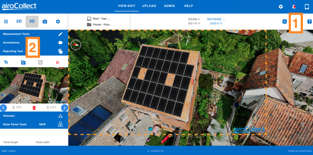 Als je in hetzelfde gebied hebt gewerkt, upload dan onder hetzelfde project en item! Hierdoor kunnen modellen worden vergeleken en kunnen dak- en gevelmetingen op dezelfde locatie plaatsvinden.